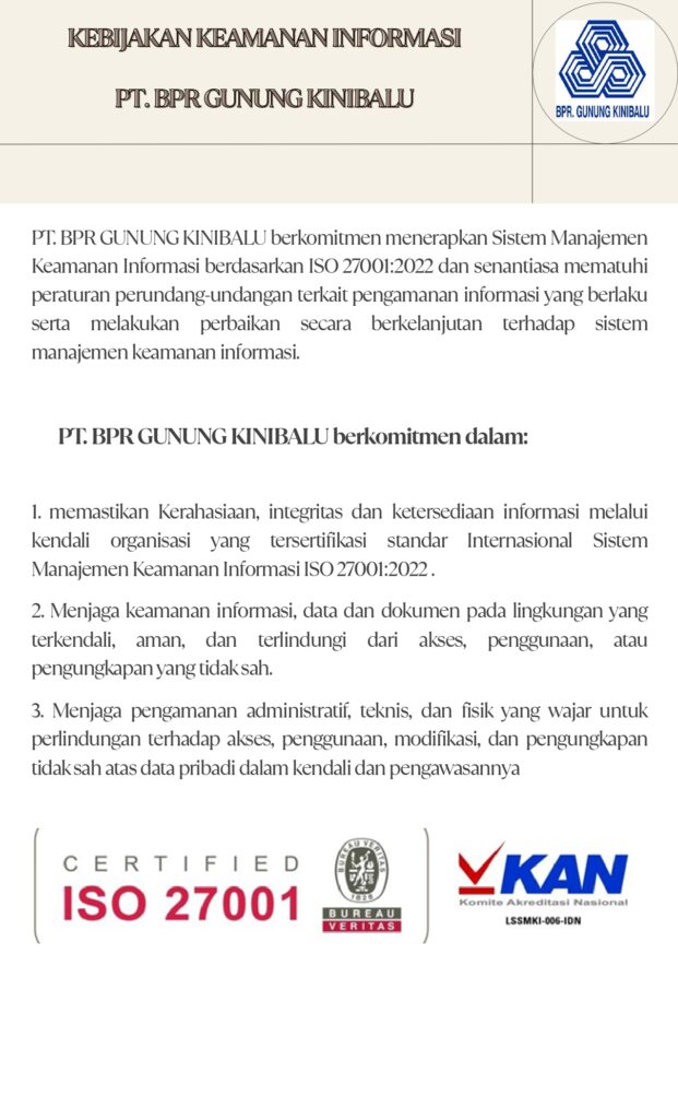 Halo, Selamat datang di BPR Gunung Kinibalu. Ada yang bisa kami bantu?